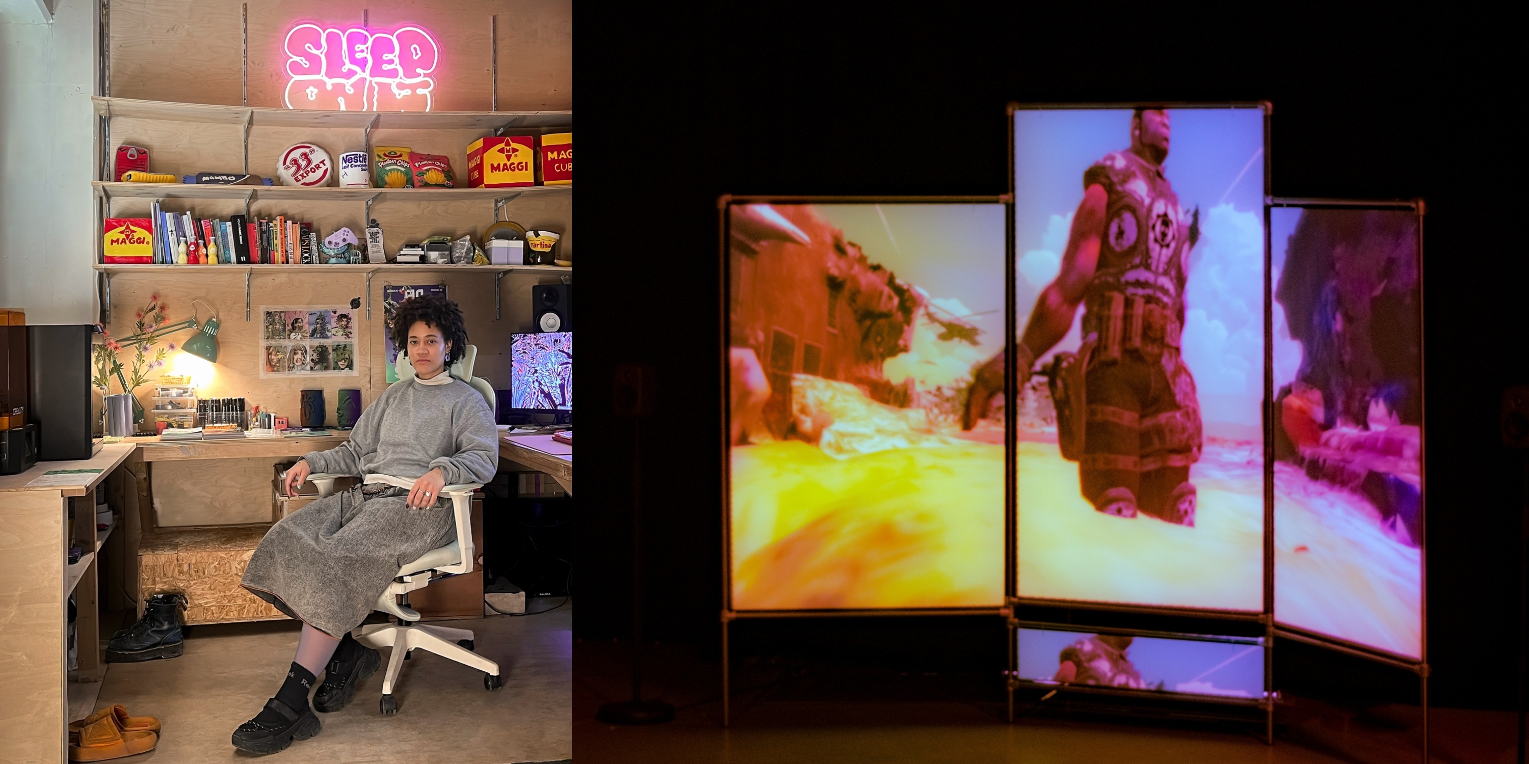 Sondi (BA Graphic Design 2021) creates soft and dreamy work with a message. Her practice draws inspiration from heritage, technology, the African diaspora, and resistance, and is realised through animations, games, installations, performances, and film.