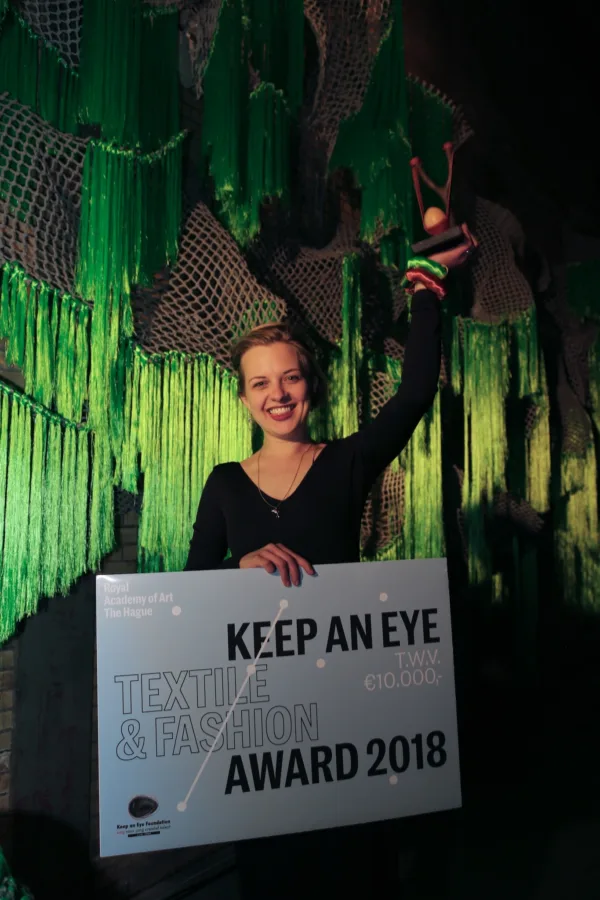 The award is an initiative of the Keep an Eye Foundation with the aim to support a fourth year student of the Textile and Fashion department of the KABK in realising their ambition to improve their skills after graduation by means of a further study. Both the Fashion Show and the exhibition EXPOSDED were powered by the Keep an Eye Foundation.