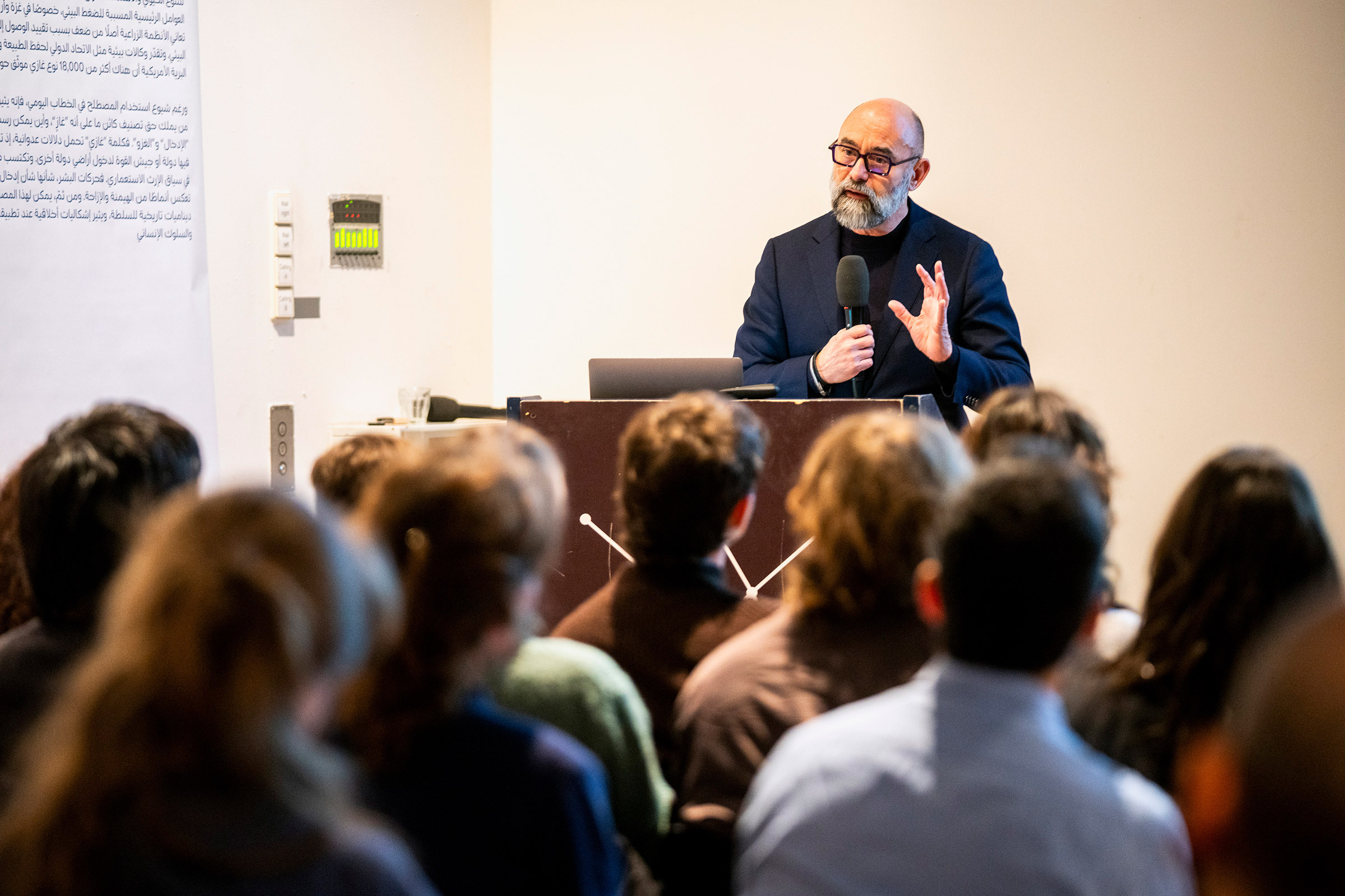 The symposium, organized by the Master Non Linear Narrative, was part of the Erasmus+ Cooperation Partnership ‘Climate Truth Crisis,’ a project that investigates how climate change skepticism impacts democracy and public trust. Together with staff and students from seven partner academies in The Hague, Reykjavík, Barcelona, London, Vilnius, Tallinn, and Sarajevo, the research project explores the relationship between climate change denial and the unequivocal rise of autocracy across the globe. The symposium featured an outstanding line-up of speakers, including Gabriele Colombo, Mijke van der Drift, Sophie Dyer, Joey Grostern, Jennie King, Sabine Niederer, and Sorab Roustayar.